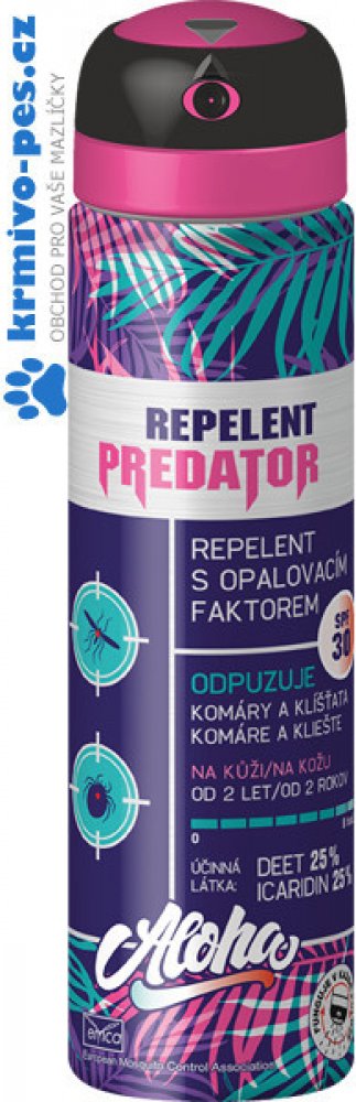 Používejte biocidy bezpečně. Před použitím si přečtěte údaje na obalu a připojené informace o výrobku. Repelent PREDATOR ALOHA je účinný repelent proti komárům po dobu 4-8 hodin a na klíštata po dobu 4 hodin.
