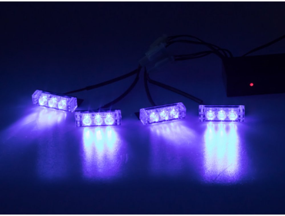 4 přídavná modrá výstražná LED světla pro externí povrchovou montáž, především do přední mřížky vozidla.