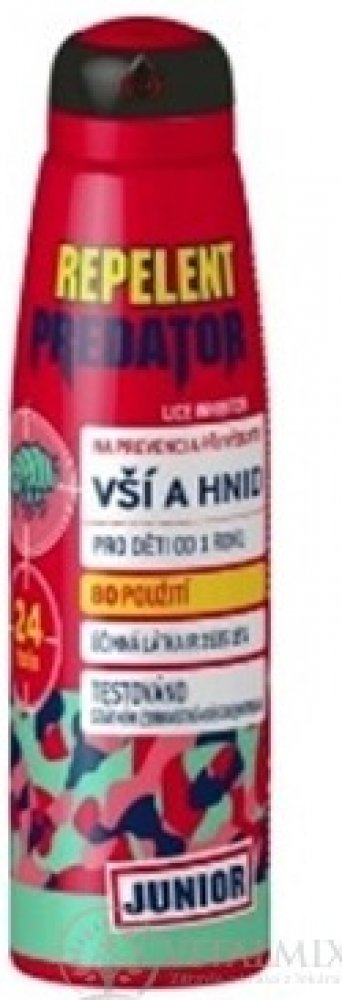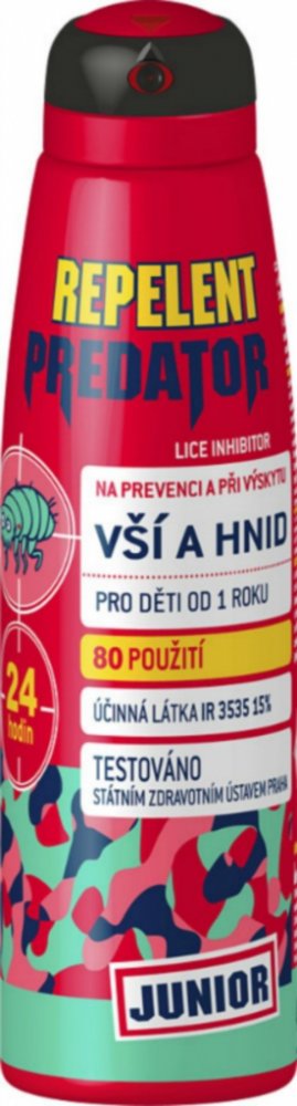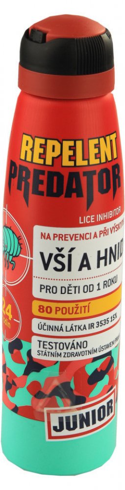 Repelent Predator preventivní sprej je spolehlivý repelent proti vším. Obsahuje osvědčenou látku IR 3535, tj. široce používaný repelent proti zamoření a opětovnému napadení vší dětskou a další přídavné látky, které napomáhají k dosažení maximálního účinku ochrany proti vším.