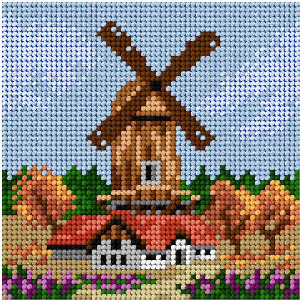 Gobelínové plátno (stramín) s natištěným obrázkem s motivem Mlýn na podzim. Kreativní předloha od výrobce Orchidea. Bavlněná vyšívací předloha s rozměry 15 x 15 cm. Kód výrobce: 2033.