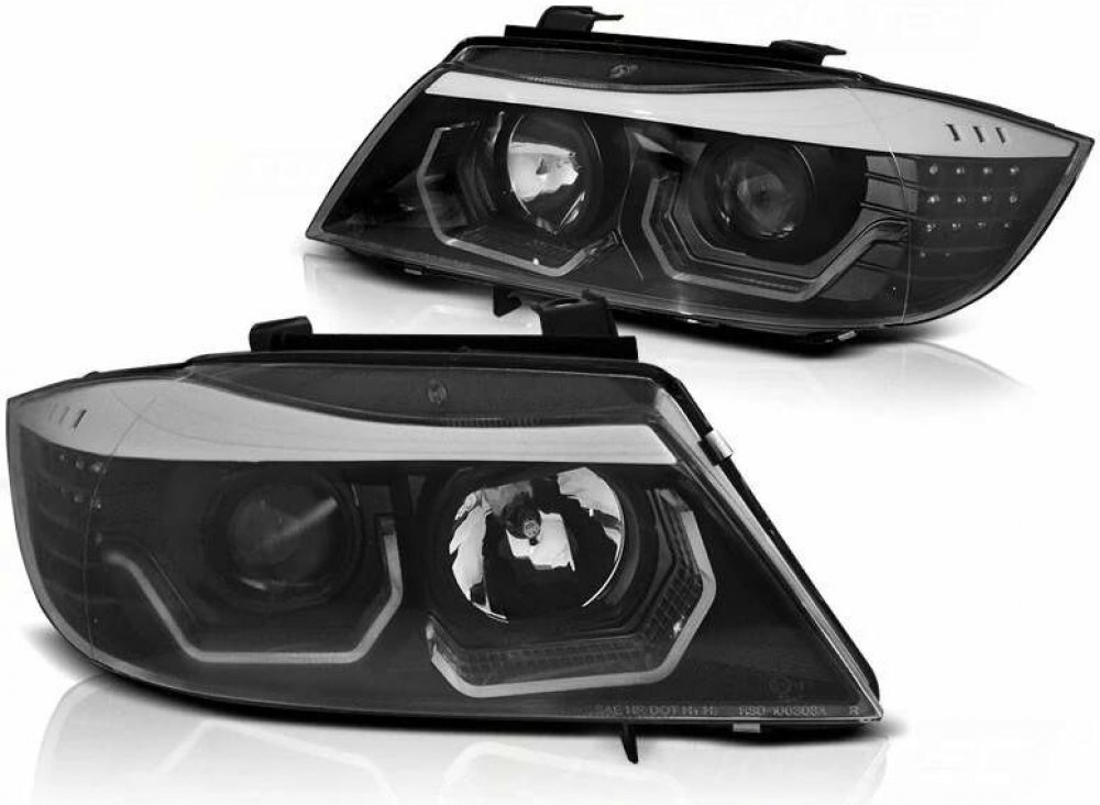 Přední světla BMW E90/E91 2005-2008 3D AE LED černá H7+H1 jsou vhodná pouze jako náhrada za originální halogenová světla. Světlomety za super cenu s rychlým dodáním.