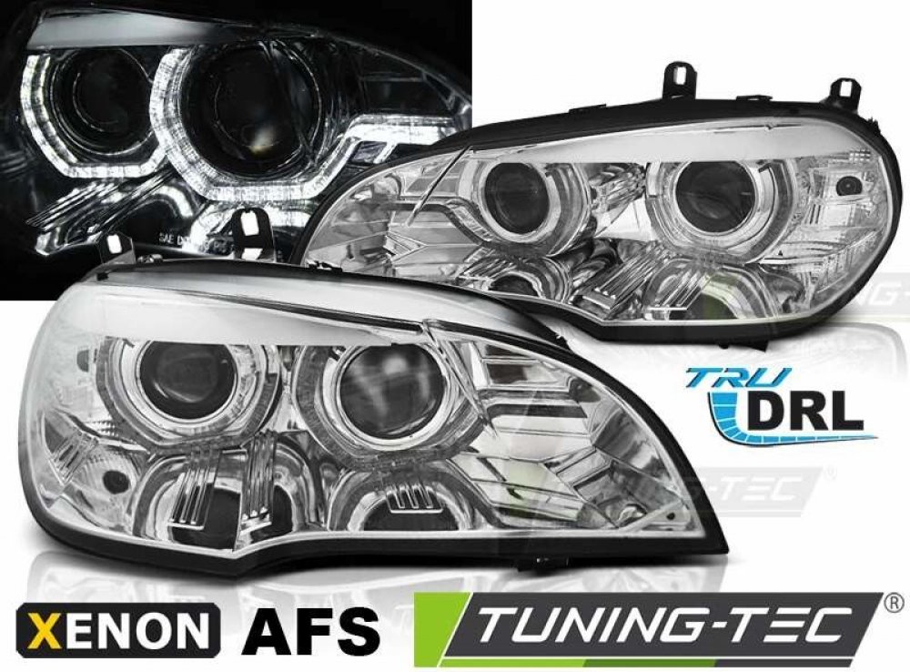 Přední světla BMW X5 E70, 2007-2010, angel eyes, DRL, chromová
