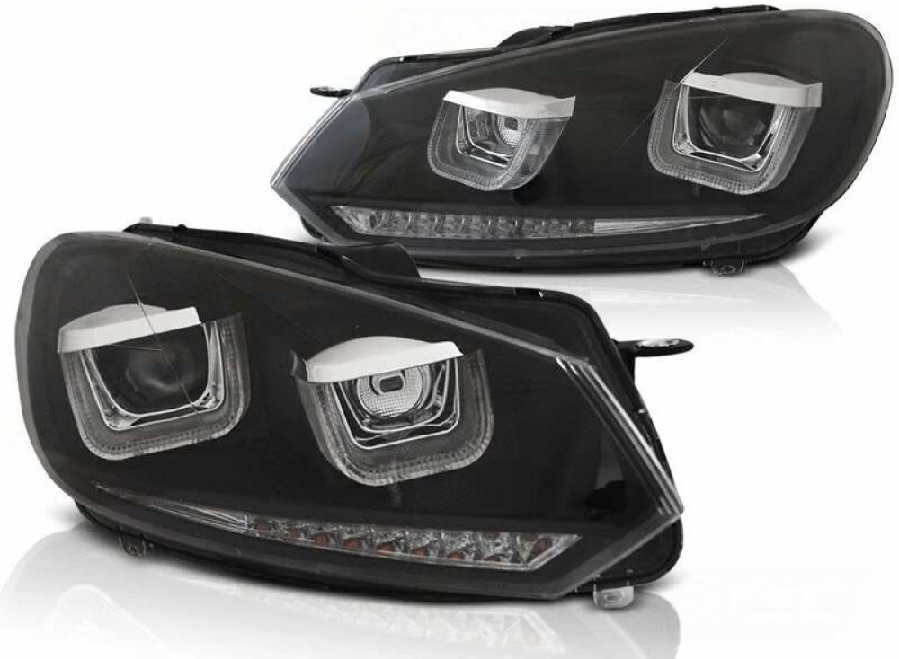 PŘEDNÍ SVĚTLA VW GOLF 6, 2008-2012, U-TYPE S LED DYNAMICKÝM BLINKREM, ČERNÁ