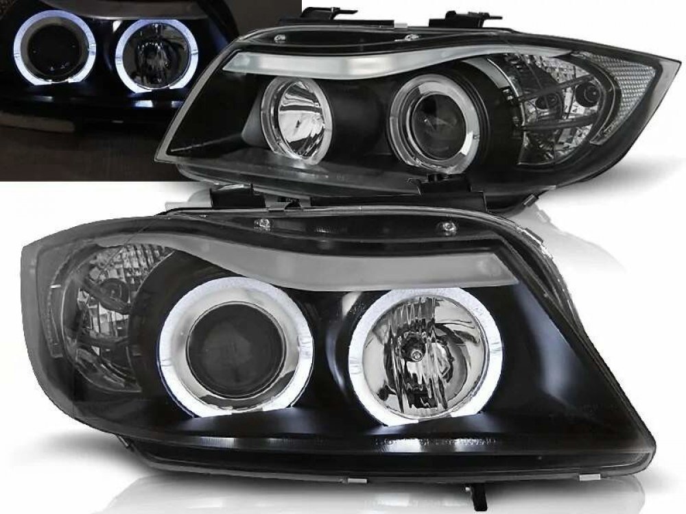 PŘEDNÍ SVĚTLOMETY BMW E90, E91, 2005-2008, ANGEL EYES, ČERNÉ BLACK
