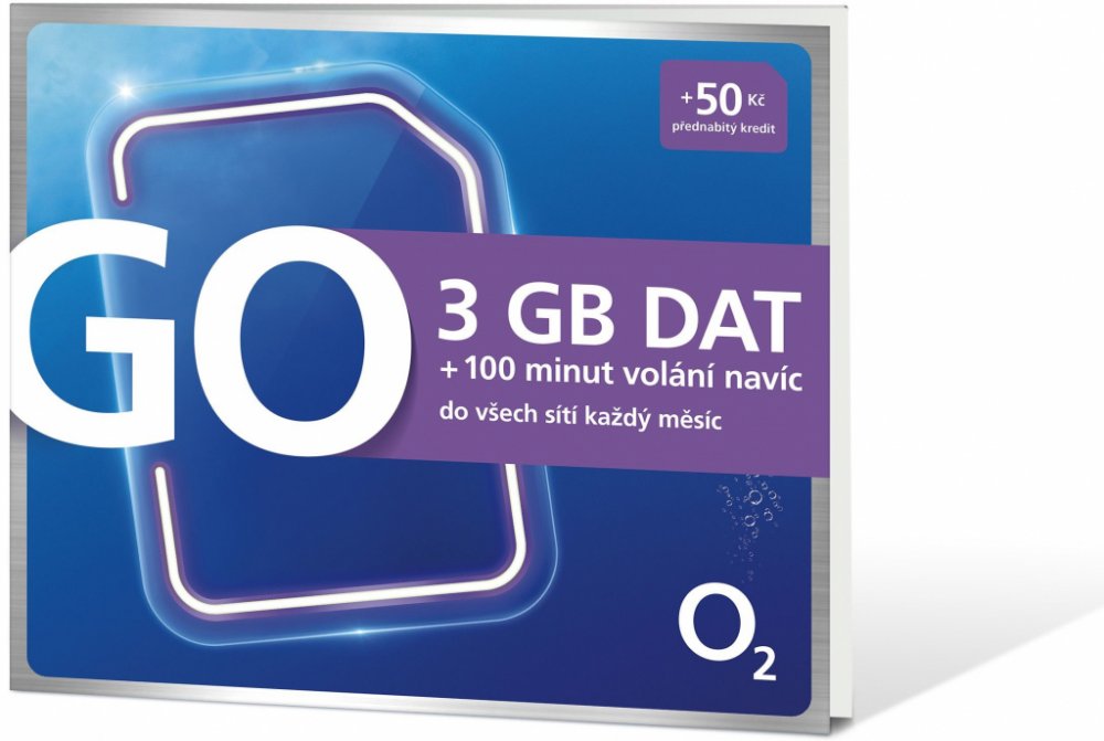 Užívejte si surfování po webu nebo sociálních sítích s předplacenou SIM kartou O2 Go 3 GB. V ceně karty získáte nejen 3 GB dat, ale každý měsíc navíc 100 minut volání do všech sítí a 25 SMS. Jako bonus dostane hned po aktivaci kredit 50 Kč.