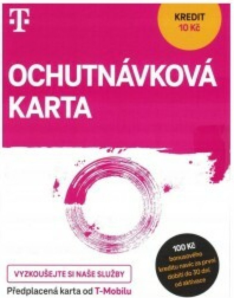 Předplacená SIM karta T-Mobile Twist – Ochutnávková karta (kredit 10 Kč) je ideální volbou pro uživatele, kteří si chtějí vyzkoušet služby T-Mobilu bez smlouvy a dlouhodobých závazků. SIM karta funguje na předplaceném principu a po aktivaci je ihned připravena k použití díky startovacímu kreditu 10 Kč.Karta je vhodná pro základní volání, SMS i mobilní data dle aktuálního ceníku tarifu Twist Standard. Díky dlouhé platnosti až 12 měsíců bez nutnosti dobití se hodí jako testovací SIM, záložní karta nebo jednoduché řešení pro krátkodobé i občasné používání. Veškeré služby, balíčky a spotřebu lze pohodlně spravovat v aplikaci Můj T-Mobile.Tarif Twist Standard umožňuje využívání služeb bez paušálu a bez smluvních závazků, s plnou kontrolou nad výdaji.Co karta obsahuje:Startovací kredit 10 KčPlatnost SIM karty až 12 měsíců bez dobitíPředplacený tarif Twist StandardMožnost volání, SMS a dat dle aktuálního ceníkuRoaming v rámci EUKolik za co zaplatíte:Volání: 4,50 Kč / minSMS: 1,90 KčMMS: 4,90 Kč*Ceny platí dle tarifu Twist Standard. Datové balíčky a další služby lze aktivovat samostatně.Další výhody:Bez smlouvy a bez měsíčních poplatkůPlná kontrola výdajůSpráva SIM karty přes aplikaci Můj T-Mobile (Android / iOS)Vhodná jako testovací nebo záložní SIM kartaRoaming v rámci Evropské unieDůležité informaceAktivací SIM karty souhlasíte s obchodními a smluvními podmínkami společnosti T-Mobile Czech Republic a.s.Podrobné informace, aktuální ceník a podmínky jsou dostupné v aplikaci Můj T-Mobile nebo na webu T-Mobile.RRP: 99 Kč vč. DPH