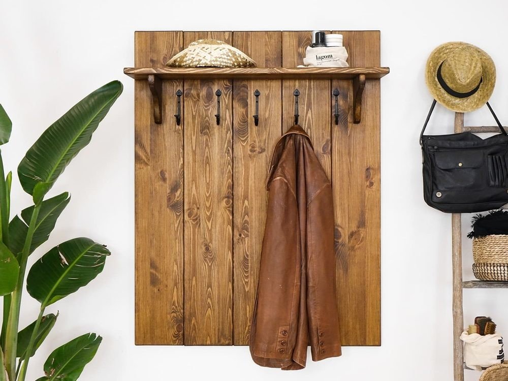 Panel s věšáky Rustyk Tak tento prvek snad nechybí v žádné šatně či předsíni! Panel s věšáky Rustyk Tak tato komponenta je odnepaměti skvělým a praktickým prvkem, který nechybí v žádné domácnosti! Deska z masivního dřeva, na které nechybí háčky pro pověšení svrchního oděvu a nad nimi praktická police, kterou podepírají dřevěné konzoly podtrhující jedinečný charakter rustikálního stylu. Dřevo v cel...
