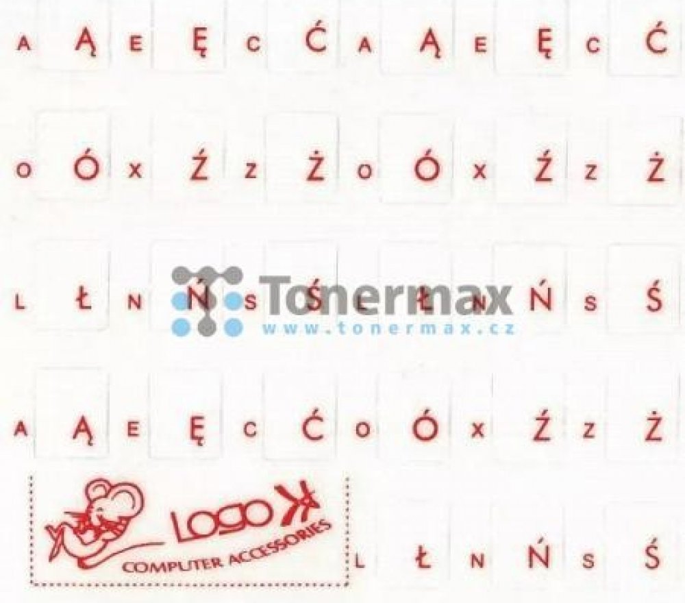 Přelepky na klávesnici počítače či notebooku. Červený potisk, průhledné, vhodné pro světlejší typy klávesnic. Nemáte klávesnici s polskými znaky, ale často píšete dokumenty v polském jazyce? Děláte překlady, píšete seminární práce, nebo stále přepínáte klávesnici a hledáte znaky? Máme pro vás řešení - přelepky s polštinou na klávesnici! Jsou vhodné například také pro školy, které nemohou pro své studenty sehnat klávesnici s potiskem polských znaků. Není nic jednoduššího než si zakoupit naši sadu polských znaků a na klávesnici si je jednoduše nalepit!