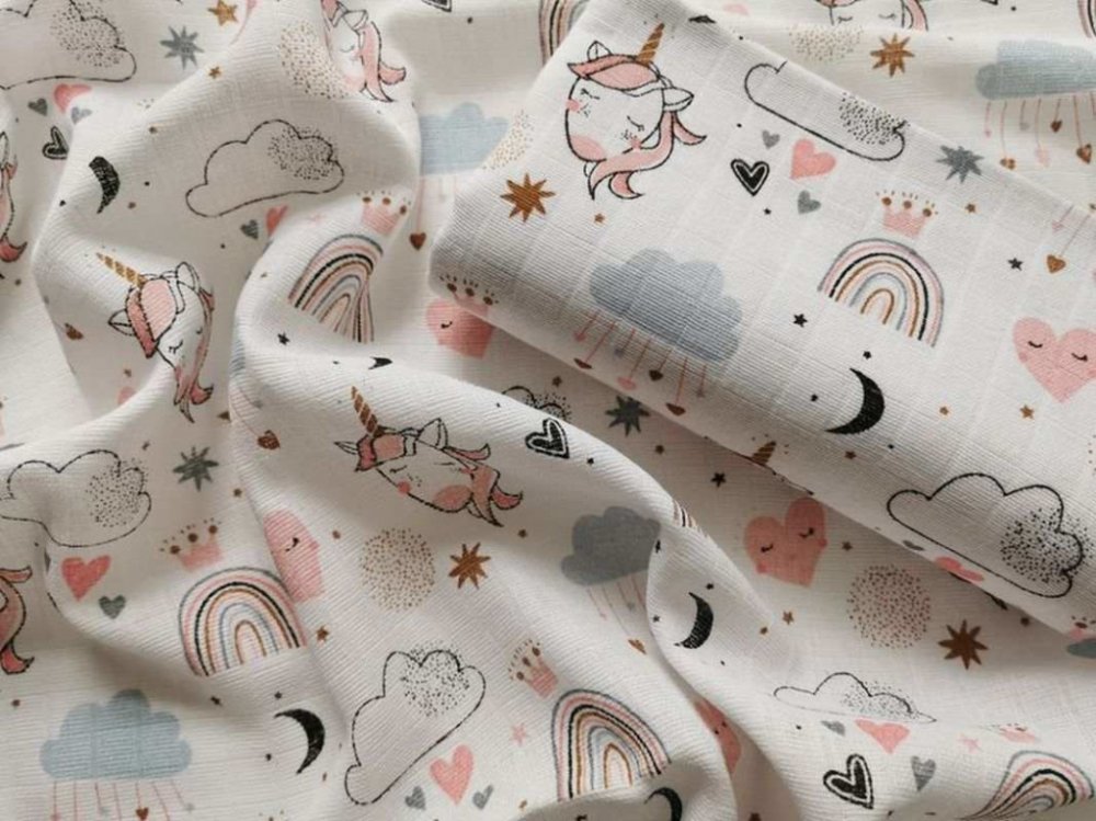 Kvalitní bavlněná tetra osuška s potiskem Jednorožec má rozměr 90x100 cm. Kvalitní dětská osuška je vyrobena z čisté bavlněné příze, která je tím nejlepším pro jemnou dětskou pokožkou.Vysoká kvalita šití minimalizuje možnost třepení.