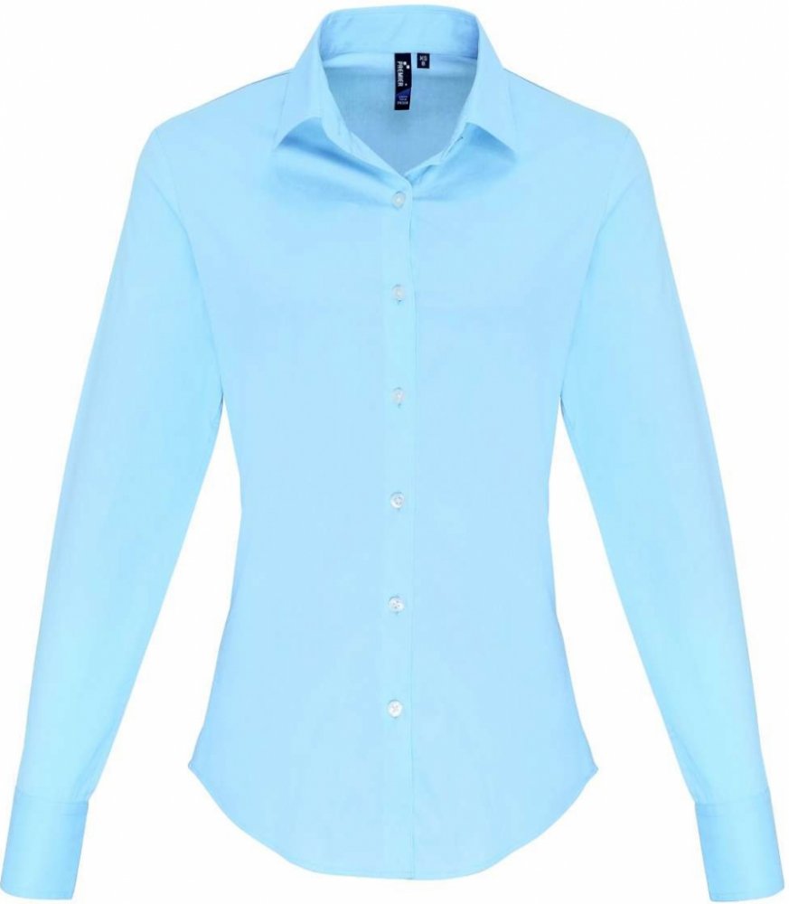 Premier dámská košile s dlouhými rukávy STRETCH-FIT bledá modrá