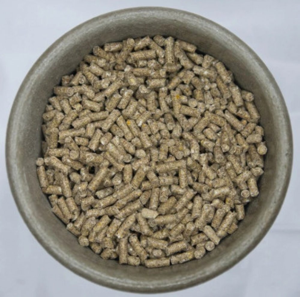 Obsahuje mimo jiné: cukrovarské řízky řepné, vojtěšková moučka, krmné otruby žitné, jablečné výlisky, slupky ze sojových bobů, extrudované lněné semeno, sladový květ ječný, ostropestřecový krmný expeler, melasa řepná, slunečnicový extrahovaný šrot loupaný - cukry 9 %, škrob 5,5 %
