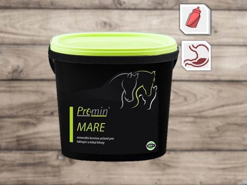 Premin® MARE je minerální krmivo určené pro březí a kojící klisny v zájmovém chovu. Důležité stopové prvky jsou dodány organickou formou pro lepší vstřebávání do organismu.Ostropestřecový expeler má hepatoprotektivní účinky - chrání játra a podporuje jejich správnou funkci. Kvasinky zlepšují stravitelnost živin krmiva a tím příznivě ovlivňují tvorbu a kvalitu mléka klisen a potažmo i optimální vý...