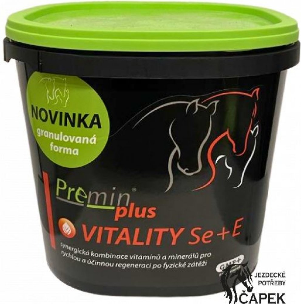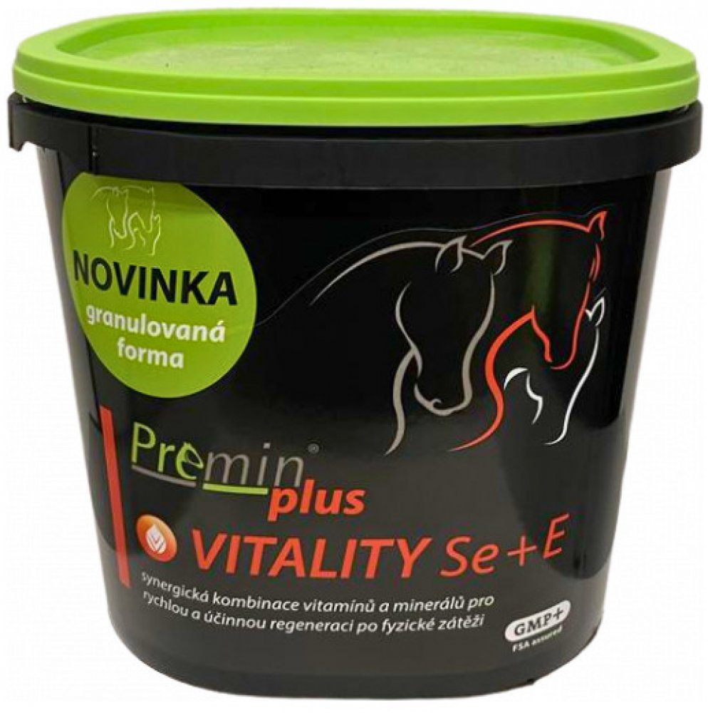 Doplňkové krmivo Premin® VITALITY je vhodné hlavně pro sportovní, dostihové a chovné koně. Obsahuje důležité antioxidanty, vitamíny E a C a stopový prvek selen, který je částečně uhrazen vysoce účinnou nanoformou. Tyto elementy jsou potřebné pro optimální funkci všech orgánů svalového, reprodukčního a imunitního systému. Selen podporuje ochrannou funkci vitamínu E a oba prvky jsou důležité pro správnou funkci reprodukčních orgánů a následně i pro optimální prenatální a postnatální vývoj hříběte. U koní se zvýšenou fyzickou aktivitou zajišťuje Premin® VITALITY správnou funkci svalů a rychlou regeneraci poškozených svalových tkání. Krmivo je vhodné i pro koně, kteří mají příznaky únavy a pro zlepšení funkce imunitního systému. Také je vhodné pro koně se zvýšenou potřebou vitamínu E a Selenu, např. pro koně s metabolickými syndromy.