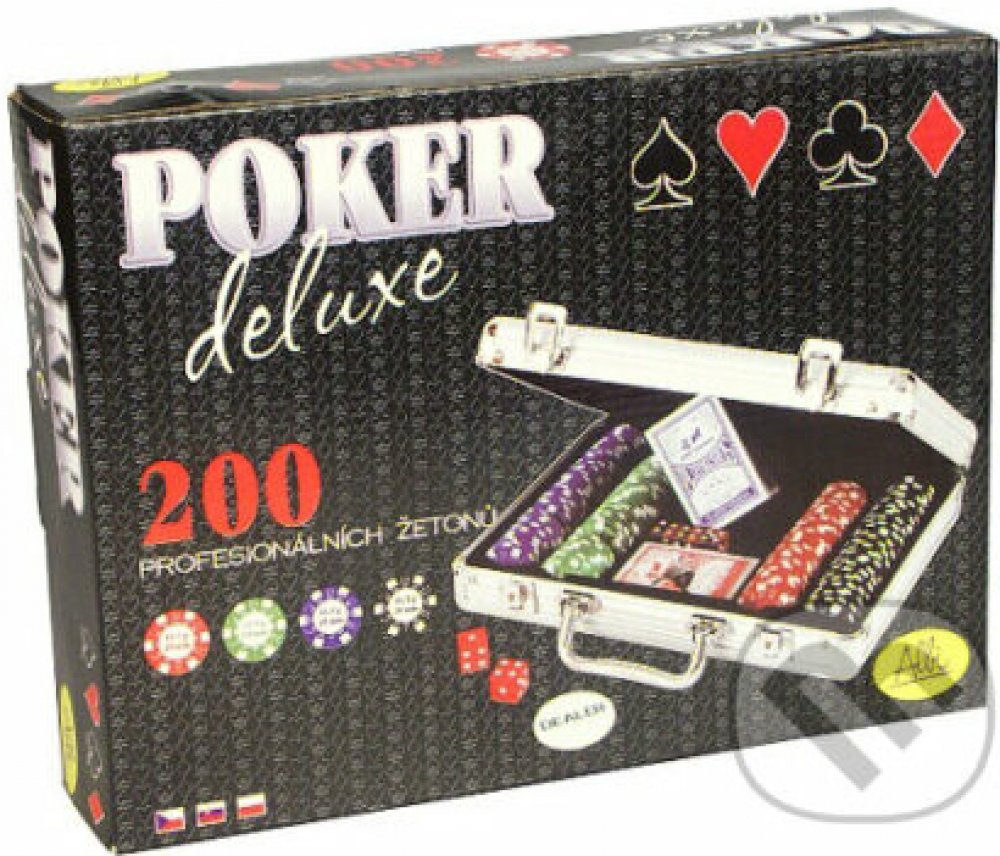 Pokerová sada ve stylovém hliníkovém kufříku stříbrné barvy obsahuje 200 profesionálních 11,5 gramových žetonů, dvě sady karet, hrací kostky a žeton Dealer.