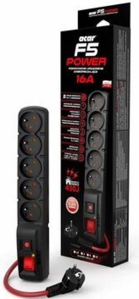 Acar F5 je výkonný prodlužovací přívod s přepěťovou ochranou pro proud až 16A z produktové řady Acar.