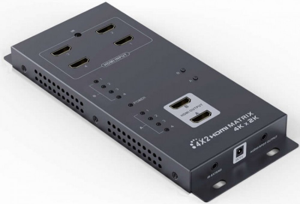 Umožní propojit více zdrojů signálu, 4 vstupy HDMI na 2 výstupy HDMI.