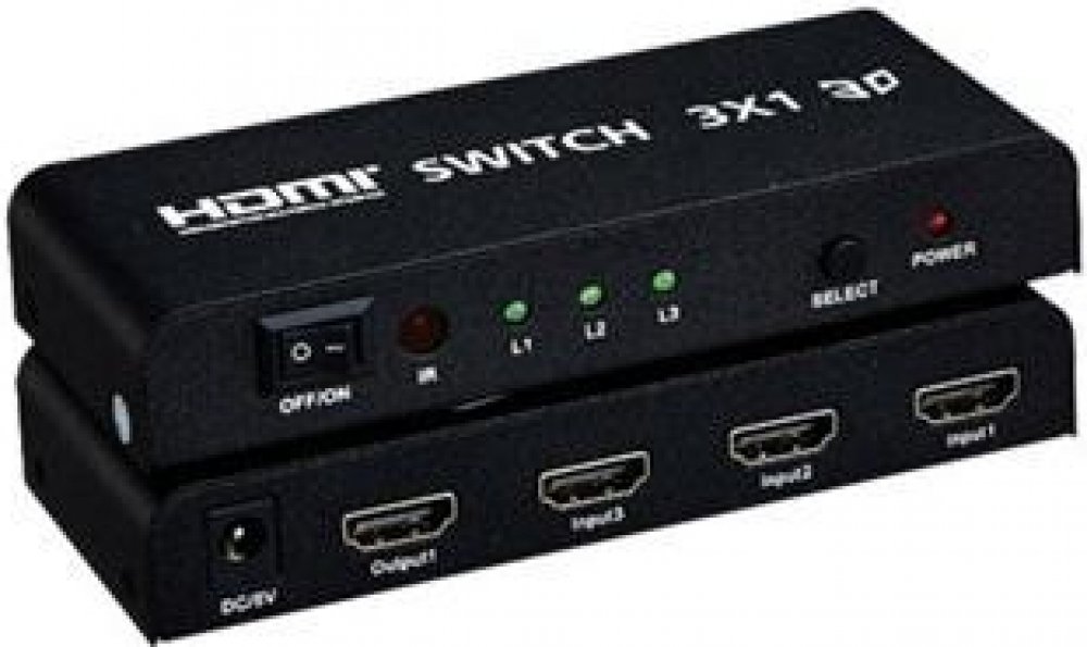 HDMI switch 3:1 s dálkovým ovladačem3 HDMI zařízení sdílí 1 HDMI výstupní zařízení (obrazovku). Výběr zařízení tlačítkem nebo dálkovým ovládáním.Podpora 20m HDMI kabelu na vstupu,10m HDMI kabelu na výstupu HDMI switche- HDMI rolišení 480i, 480p, 720i, 720p,1080i a 1080p - Podpora modů VGA,SVGA,XGA,UXGA mode - Podporuje datový tok 2.5Gbps a frekvenci až 250MHz - Podporuje standard HDMI1.4A- Nejvyšší rozlišení FULL HD 1080p/60Hz- 8bit,10bit,a 12bit barevná hloubka na kanál- Výběr vstupu tlačítkem/dálkovým ovládáním- Plug-and-play, není třeba software.- HDCP kompatibilní- V sadě dálkové ovládání pro komfortní obsluhu- Podpora 3D obrazu- Podpora FULL HD- Přídavný adaptér 230V/5V, 1A v sadě