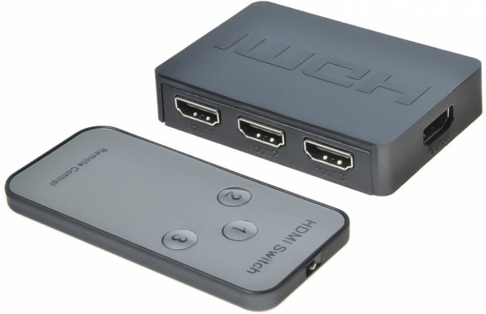 HDMI switch 3:1 s dálkovým ovladačem. 3 HDMI zařízení sdílí 1 HDMI výstupní zařízení (obrazovku). Výběr zařízení tlačítkem nebo dálkovým ovládáním