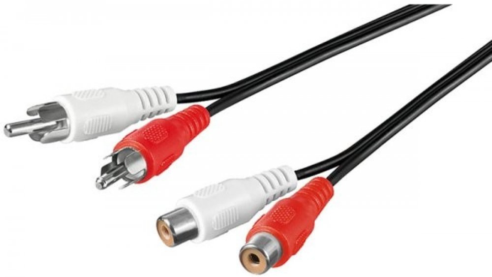 Kabel pro prodloužení spojení dvou audio zařízení zvukovým signálem stereo kvality. Na obou stranách jsou 2 konektory RCA (cinch).