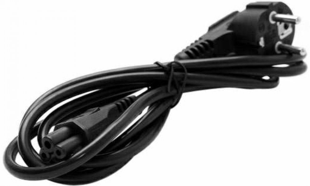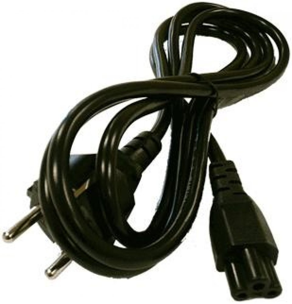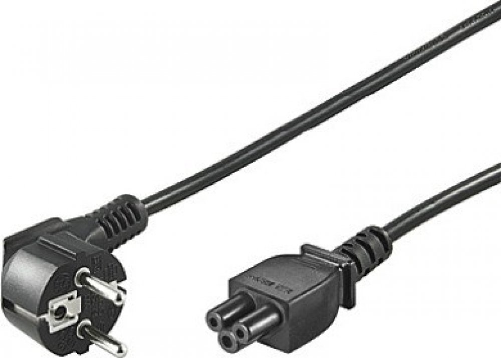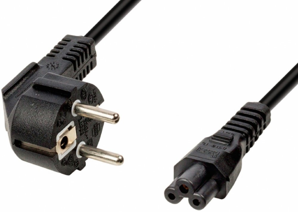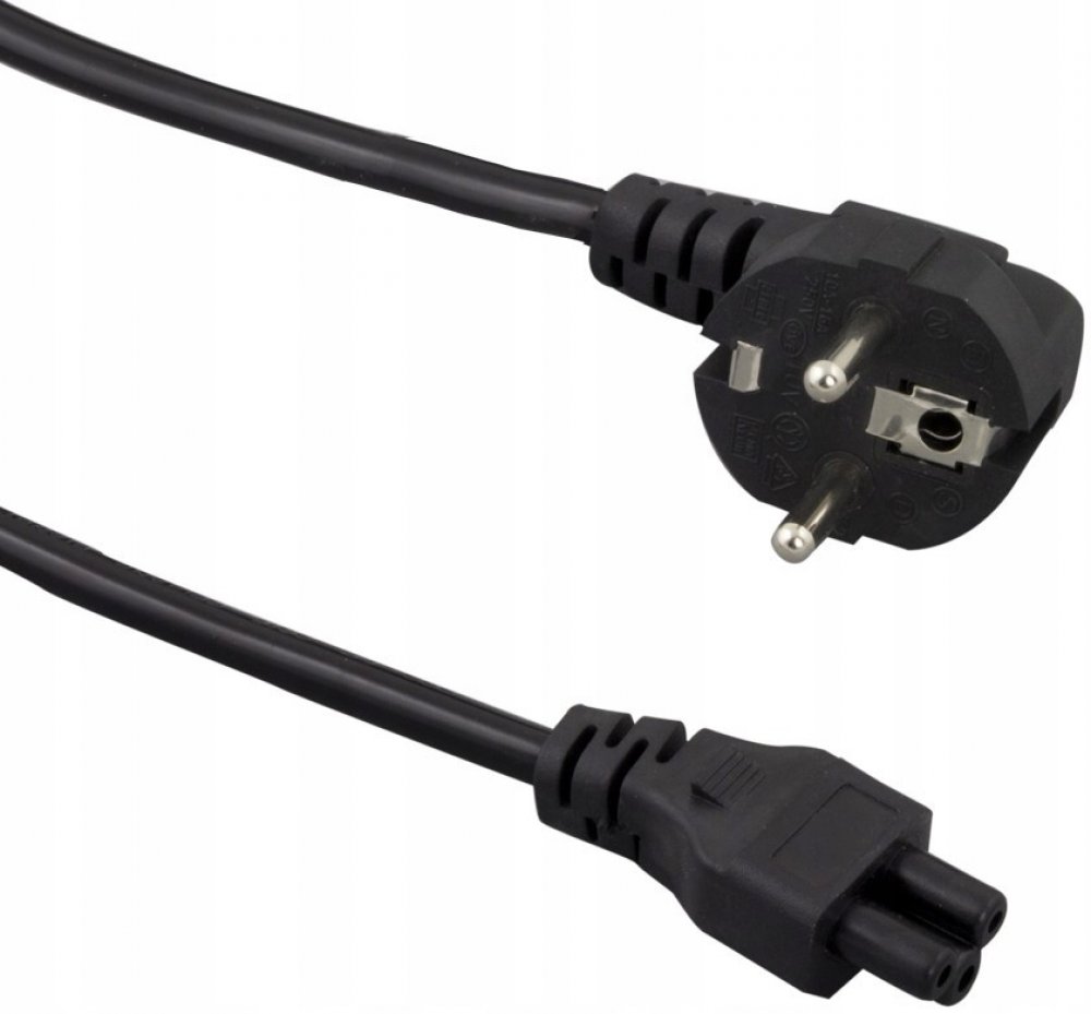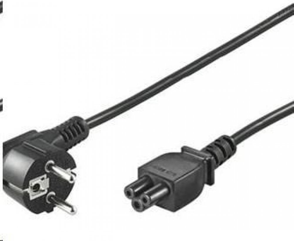 Napájecí kabel v černém provedení pro notebook. Třížilový kabel je zakončený zástrčkou typu "Mickey mouse" IEC 320 C5.