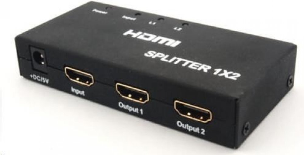 HDMI Video Splitter 1 => 2 porty s externím napájecím zdrojem, HDMI 1.4a kompatibilní max. rozlišení 4K, 1080i a 1080p.