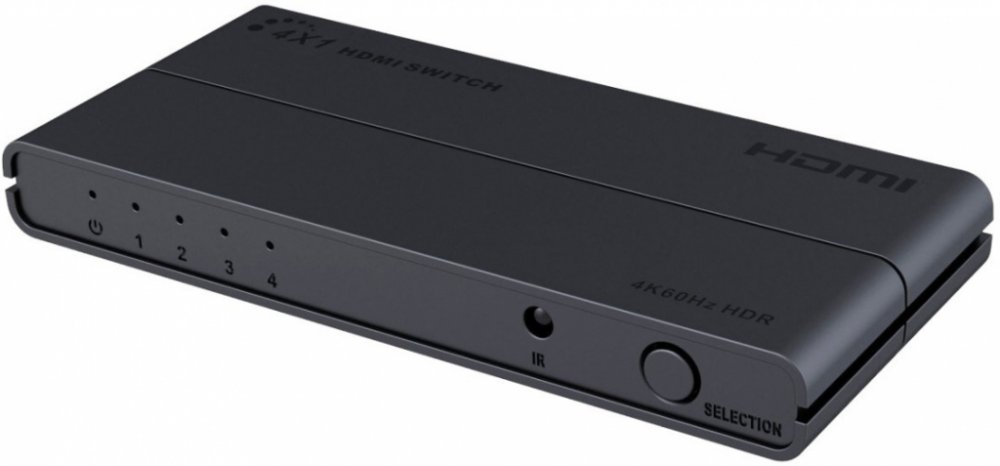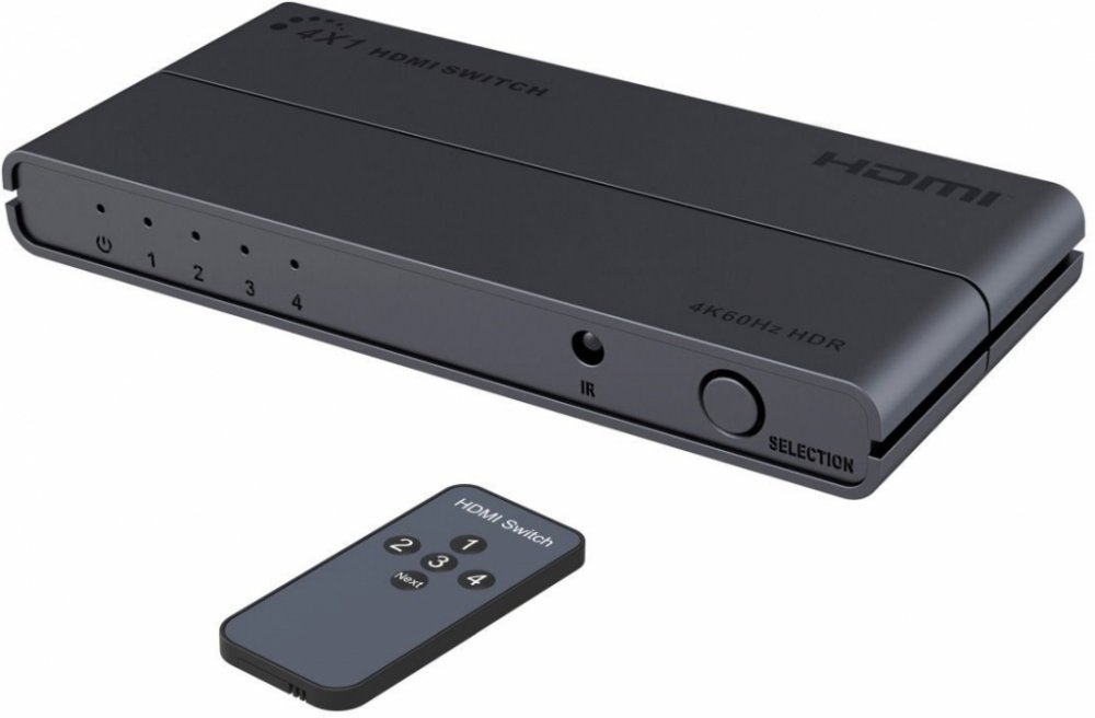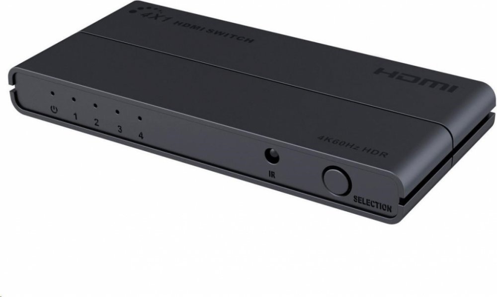 PremiumCord HDMI switch 4:1 s podporou rozlišení 4Kx2K@60Hz, 1080P, HDR, s ovládáním tlačítkem a dálkovým ovladačem