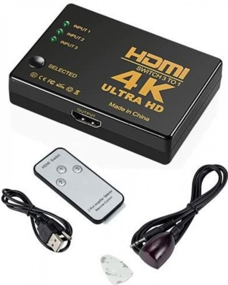 4 HDMI zařízení sdílí 1 HDMI výstupní zařízení (obrazovku). Výběr zařízení tlačítkem nebo dálkovým ovládáním.