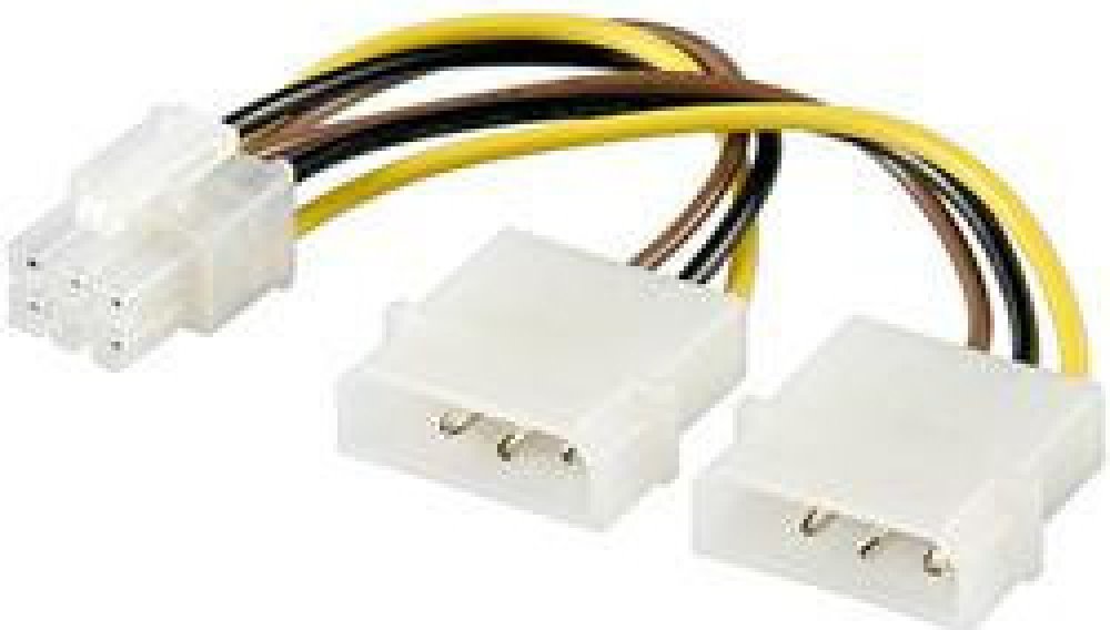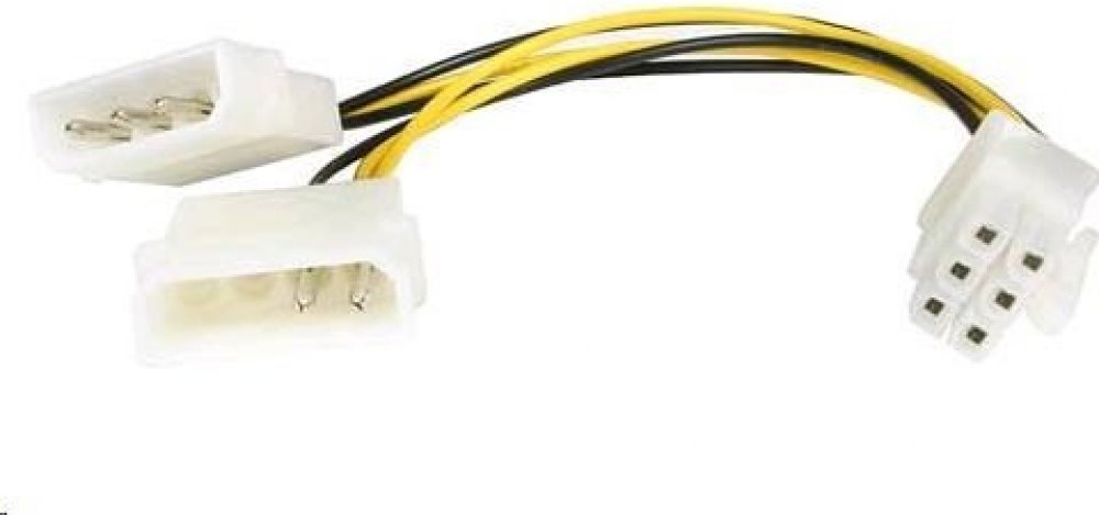 Redukce napájecí 5.25\" Molex - 6 pin pro PCI-E grafické karty\n\nRedukce pro připojení přídavného napájení do grafické karty sběrnice PCI-Express.\n\n- 20cm délka\n- 2x 5,25\" 3pin plug 6pin graphic card plug \n\nKabel je určen pro maximální proudové zatížení 2A, nehodí se k napájení speciálních víceslotových grafických karet s větším odběrem.\n\n[ENG]\nInternal PCI Power cable for Graphiccards\n...