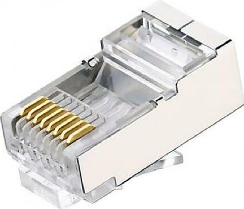 Konektor RJ45 stíněný krimpovací pro kulaté kabely - RJ45 8P8C 8 pinů - Stíněný konektor - Vhodné na lanko a drát Cat5e - 2 x prong - Prodejní balení 1 ks (větší balení po 100ks) - Material kontaktů: …