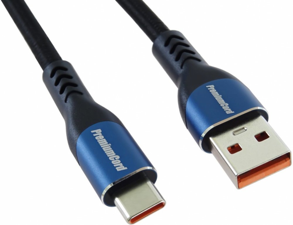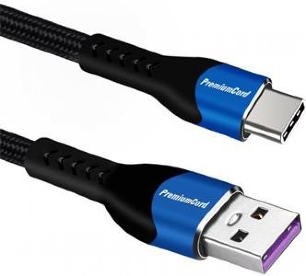 PremiumCord Super fast charging 5A kabel USB-C - USB 2.0 A bavlněný oplet a kovové hliníkové konektory 1m