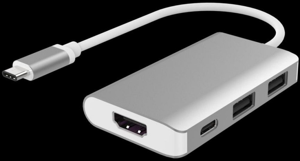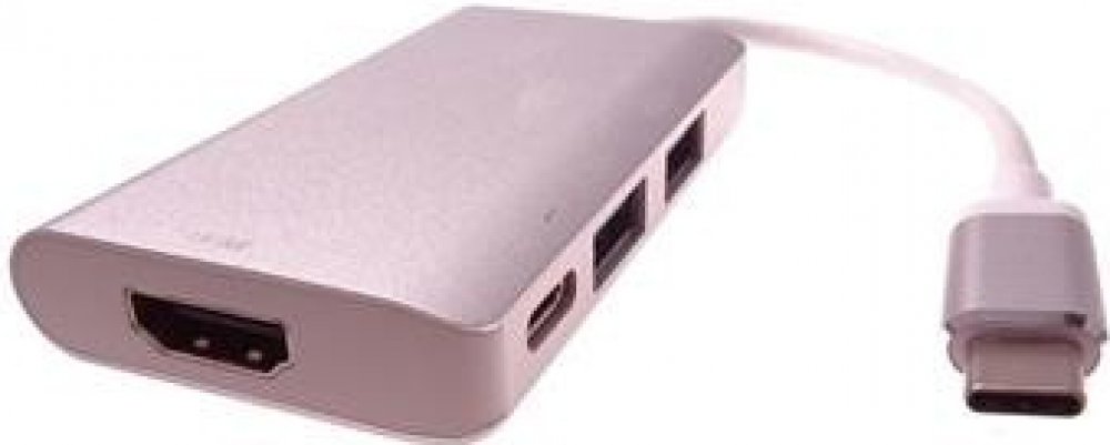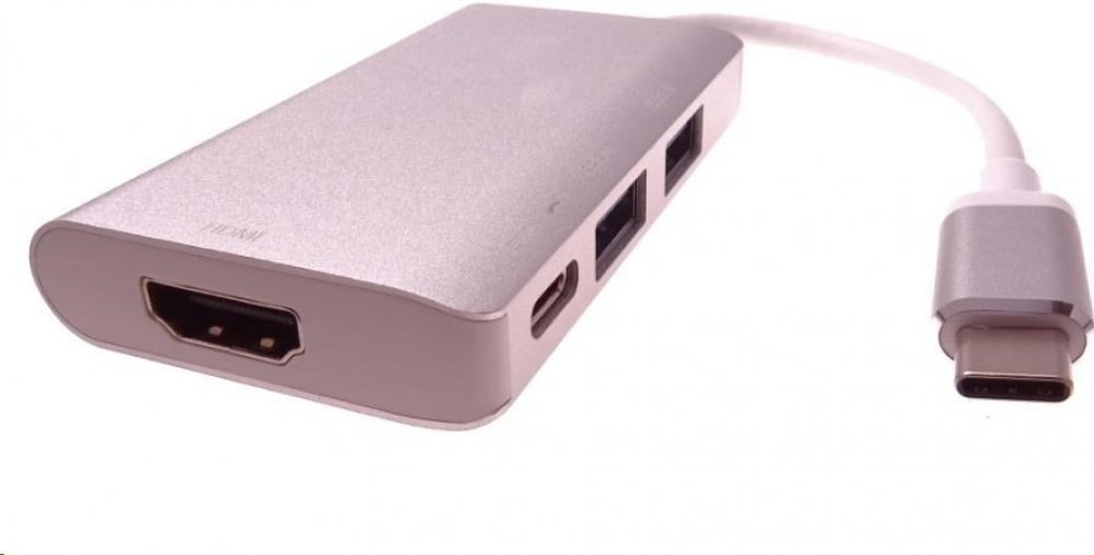 PremiumCord Převodník USB3.1 typ-C na HDMI + 2xUSB3.0 + PD charge, hliníkové pouzdro Tento adaptér umožňuje vysoce kvalitní převod videa a zvuku z USB 3.1 konektoru typu C na HDMI konektor pro monitor/TV/projektor. Funguje jako externí grafická karta s výstupem HDMI. Umožňuje připojit další USB zařízení a nabíjet přes PD konektor •Dokovací stanice umožňuje připojit zařízení, telefon s USB3.1 ( konektor typ-C ) k HDMI monitoru, dále připojit dvě USB 3.0 periferie a PD charge
