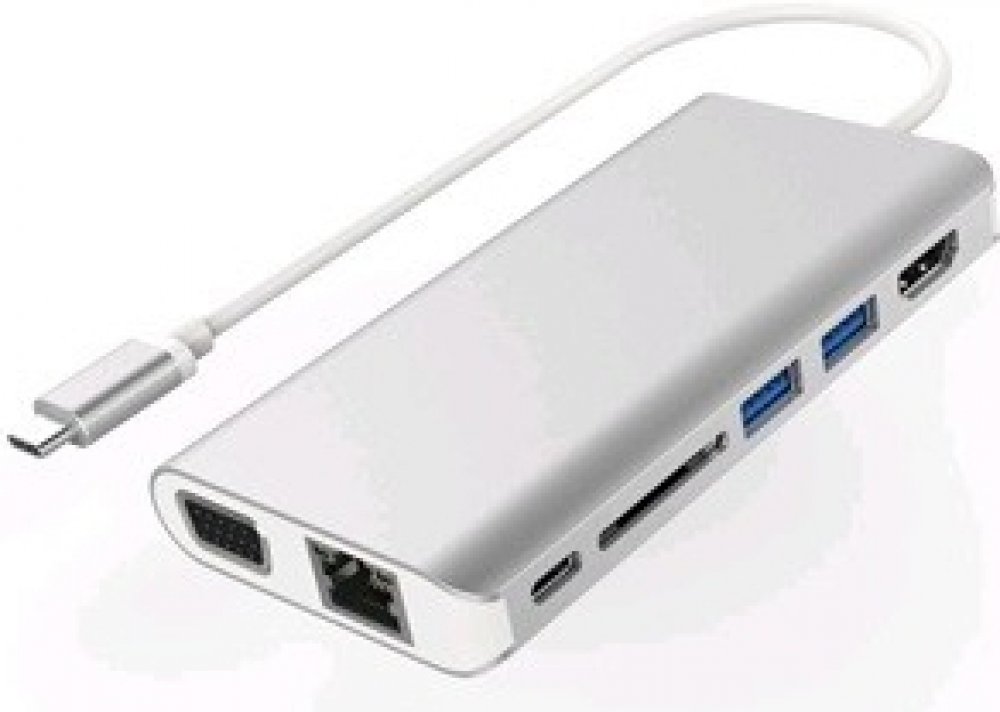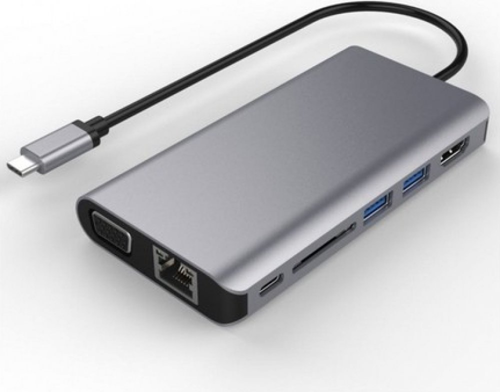 Tento adaptér umožňuje vysoce kvalitní převod videa a zvuku z USB 3.1 konektoru typu C současně na HDMI a VGA konektor pro monitor/TV/projektor. Funguje jako externí grafická karta s výstupem HDMI a VGA. Je možné zapojit monitor na oba grafické výstupy současně. Umožňuje připojit další USB zařízení a nabíjet přes PD konektor. Adaptér připojí na síť ethernet rychlostí 1Gbps.Adaptér obsahuje čtečku SD karet a audio výstup stereo jack 3,5mm.