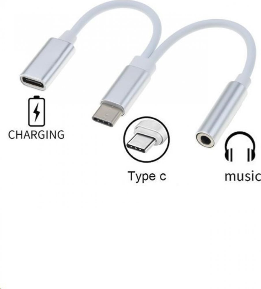 Převodník digitálního signálu na analogový; USB-C - USB-C (napájení) + JACK 3,5mm; plast; bílá; Plug and Play.