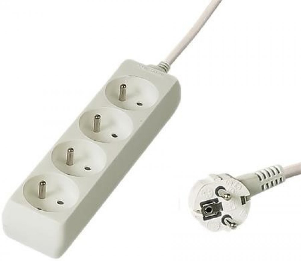 Praktický prodlužovací kabel se 4 zásuvkami. - Počet zásuvek: 4 - Vypínač: ne - Maximální napětí: 250 V - Maximální proud: 10A - Maximální zátěž: 2300W - Vodič kabelu: H05VV-F3G 1 mm2 - Dětské pojistka - dětské clonky: ano - Materiál: kabel: PVC, zásuvky: plast ABS - Baleno v PE sáčku se závěsným systémem. - Barva kabelu a zásuvek: bílá - Délka kabelu: 2m