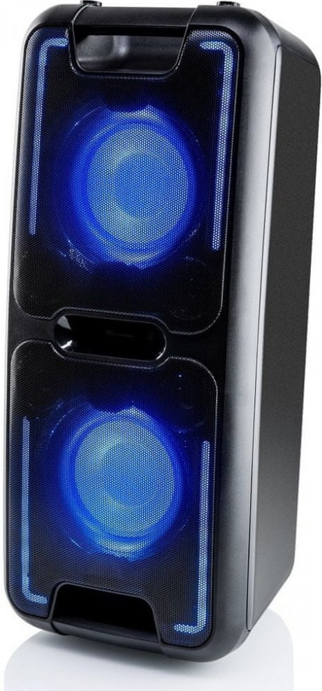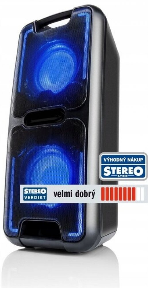 Pozor na ovladač hlasitosti, se svým výstupním výkonem 2x 35W opravdu není problém parádně naštvat sousedy, ozvučí i velké prostory. Umí i karaoke, disponuje dvěma výstupy pro mikrofon s vlastním ovládáním hlasitosti. Přidat můžete i funkci ozvěny (ECHO), kterou milují hlavně děti. Pokud máte rádi disco atmosféru, můžete si hudbu okořenit i světelnými efekty. Jelikož jde o LED diody, neuberou skoro nic na kapacitě baterie.