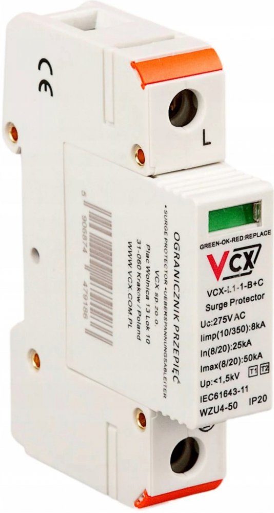 - Modulární omezovače přepětí VCX-L1-B+C třídy T1 T2 jsou určeny k ochraně napájecích instalací NN před účinky indukovaného přepětí a spínacího přepětí.