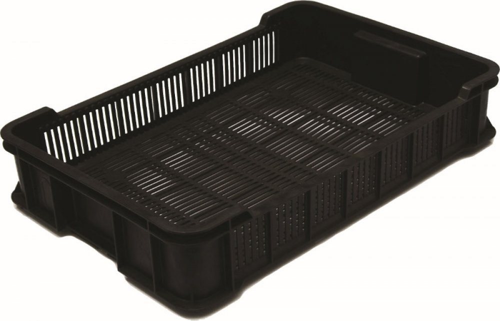 Cca poloviční výška bedny T50, nosnost 15 kg. Stohovací nosnost 150 kg. Vnitřní rozměry bedny: šířka 35,5 cm, délka 52 cm, výška 15 cm. Vnější rozměr (délka) 60cm je včetně uch.