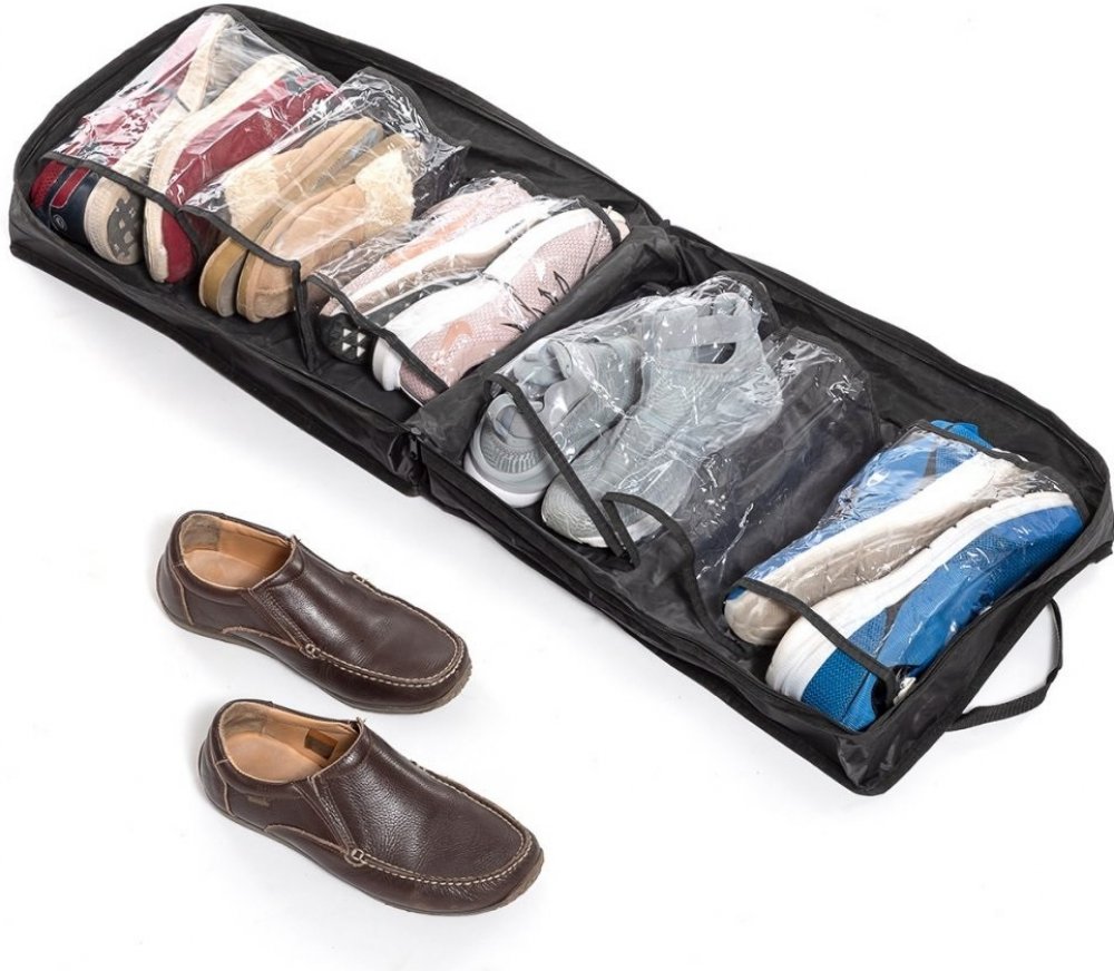 Do přepravní tašky na obuv Doshen si pohodlně naskládáte až 6 párů bot do oddělených průhledných přihrádek. Tašku pak jednoduchým přeložením složíte, zapnete zip a vezmete za 2 ucha s sebou do auta, vlaku, či letadla. Svým moderním designem ve stylu knihy Vám šetří prostor, umožní pohodlný přístup a usnadní výběr obuvi.