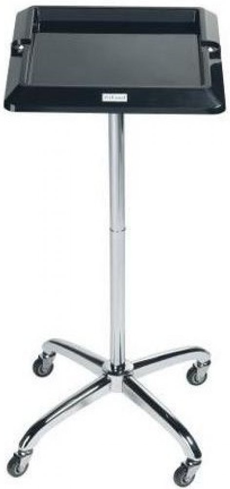 Profesionální kadeřnický odkládací stolek Sibel s pracovní plochou a dvěma držáky na štětce je velmi praktický a dobře omyvatelný. Odkládací plocha je vyrobena z kvalitního nerozbitného plastu, který se velmi dobře udržuje. Barva: černáVlastnosti:- pracovní plocha o rozměrech 40,5 x 40,5 cm- držák na kadeřnické pomůcky- nerozbitný kvalitní plast- pevná chromová noha stolku- délka chromové nohy a podstavce je 91,5 cm- 4 velmi tichá pryžová kolečka