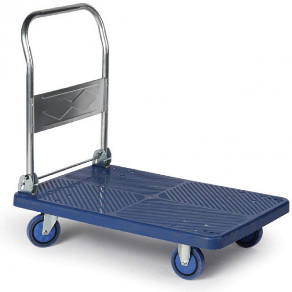 · ocelový vozík se sklopnou rukojetí a HDPE plošinou · rozměrná plošina 600 x 900 mm s nosností 300 kg · vozík je vybaven dvěma otočnými a dvěma pevnými koly z termoplastické gumy o průměru 125 mm · rozměry ve složeném stavu: 200 x 600 x 900 mm · rozměry v rozloženém stavu: 900 x 600 x 900 mm
