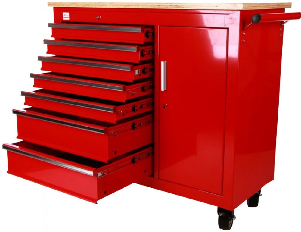 Průmyslový vozík na kolečkách pro využití v dílnách, garážích nebo i v těžkém provozu.