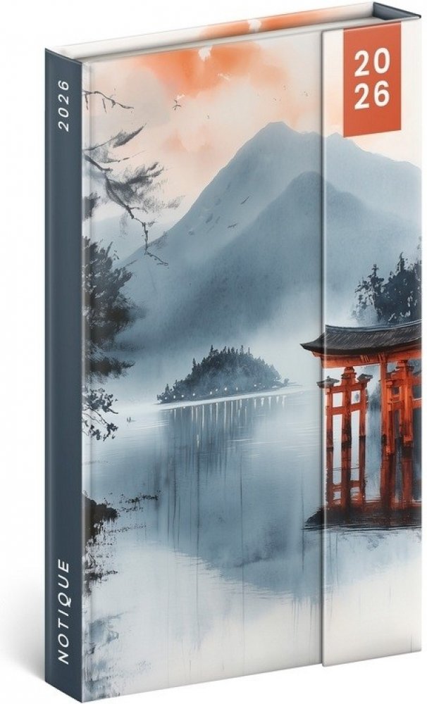 Diář týdenní A5 magnetický Japonsko 2026, Elegantní a praktický diář s pevnými deskami s magnetickým zavíráním a designovým motivem ve větším formátu A5 obsahuje české a slovenské státní svátky, dodatečné stránky pro poznámky a kapsičku na zadní předsádce. Má všitou záložku pro lepší orientaci. Sloupcové rozvržení s prostorem pro poznámky na každý den. s kalendáriem 2jazyčné (CZ, SK) / CZ, SK