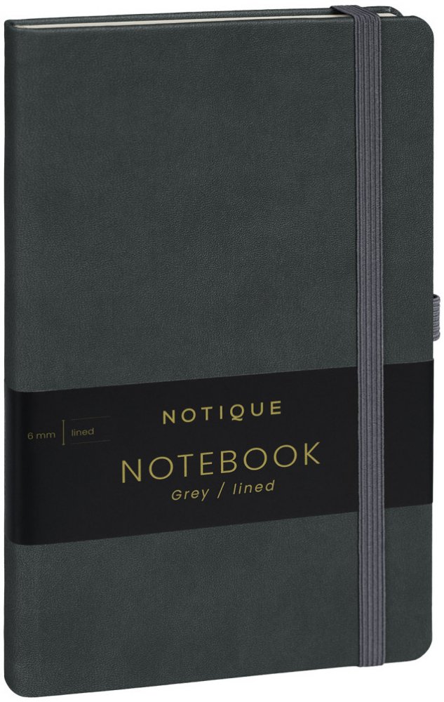 Praktický a lehký linkovaný notes v klasické šedé barvě má povrch s hrubší strukturou, na který si můžete nechat vyrazit logo společnosti. Notes má pevnou knižní vazbu a zakulacené rohy, poutko na tužku, elastickou gumičku a textilní záložku. Linky mají 6 mm a jsou na kvalitním žlutém papíře.
