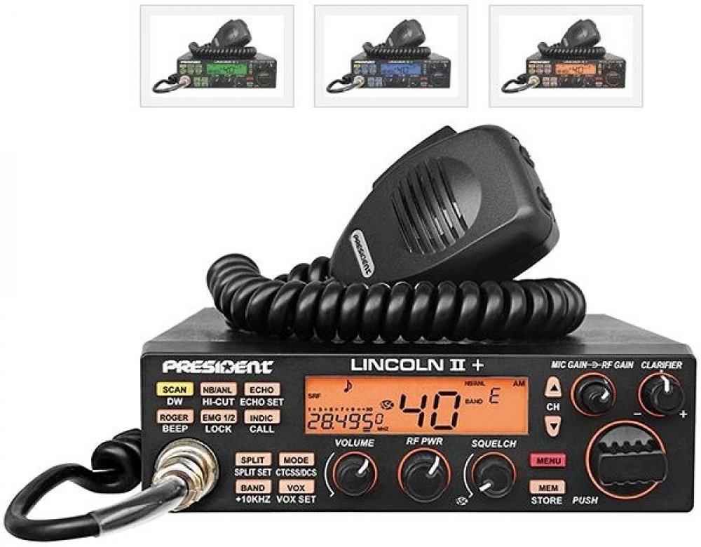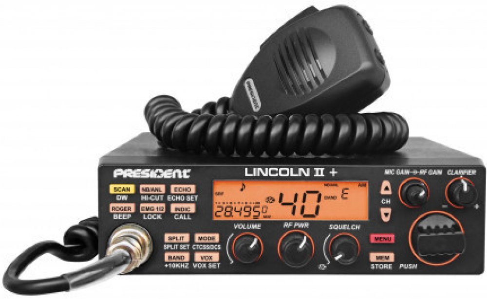 Nový model radioamatérské stanice od firmy President. Modulace: AM/FM/LSB/USB/CW Funkce: RF Gain, Mic Gain, CTCSS (38) i DCS (104) kódy, manuální i automatický squelch ASQ, ANL filtr, NB a HI-CUT, Clarifier, VoX atd. Podsvícení: Oranžová / Zelená / Modrá Rozměry: 52 x 170 x 250 mm Hmotnost : cca 1.4 kg
