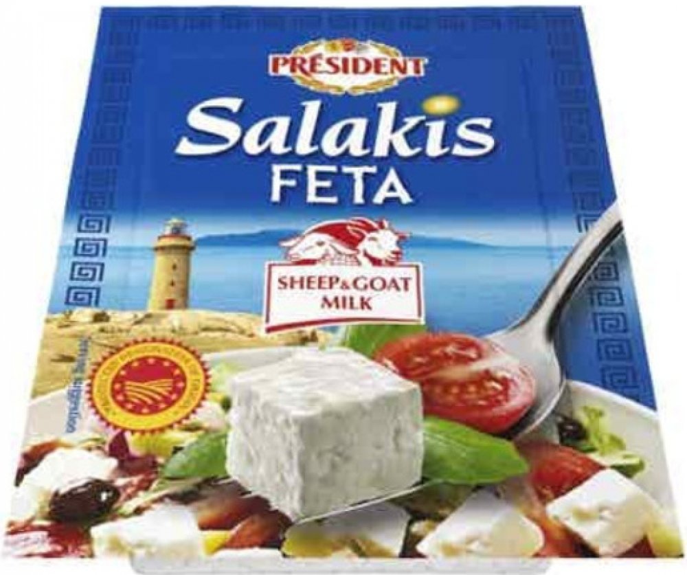 -- Sýr feta z ovčího a kozího mléka PDO*, měkký plnotučný bílý sýr zrající v nálevu, sušina min, 44 %. *PDO: Protected Designation of Origin = chráněné značení původu