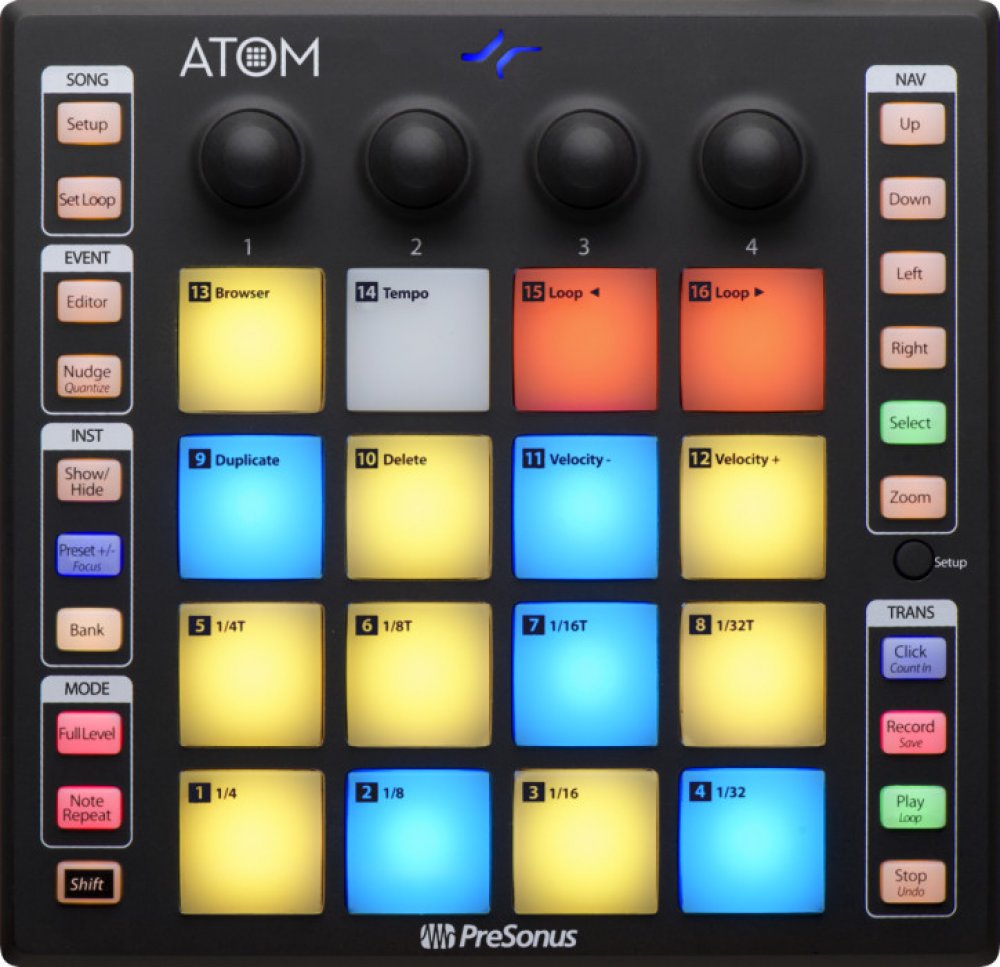 Intuitivní a snadno použitelný ATOM je více než jen expresivní MIDI pad kontroler: je to také kontrolér produkce a výkonu. Pomocí padů citlivých na rychlost a tlak můžete hrát na svých virtuálních nástrojích živě s neuvěřitelnou expresivitou. Navigujte v pořadu, aniž byste se dívali na obrazovku. Automatizujte zametání filtru pomocí čtyř citlivých knoflíků. Kamkoli vás inspirace zavede, ATOM vám umožní soustředit se na hudbu.