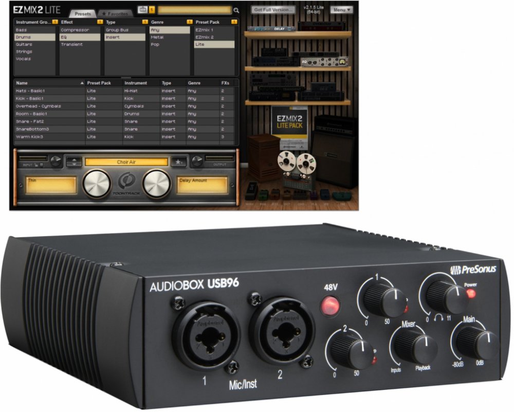 AudioBox USB je dodáván s balíkem softwarů, obsahujícím PreSonus Studio One Artist – moderní DAW software (Mac/Win), který umožňuje snadno vytvářet vysoce kvalitní projekty. Nabízí 20 nových PreSonus efektových plug-inů a virtuálních nástrojů a balík smyček, zvuků a nástrojů dalších firem.