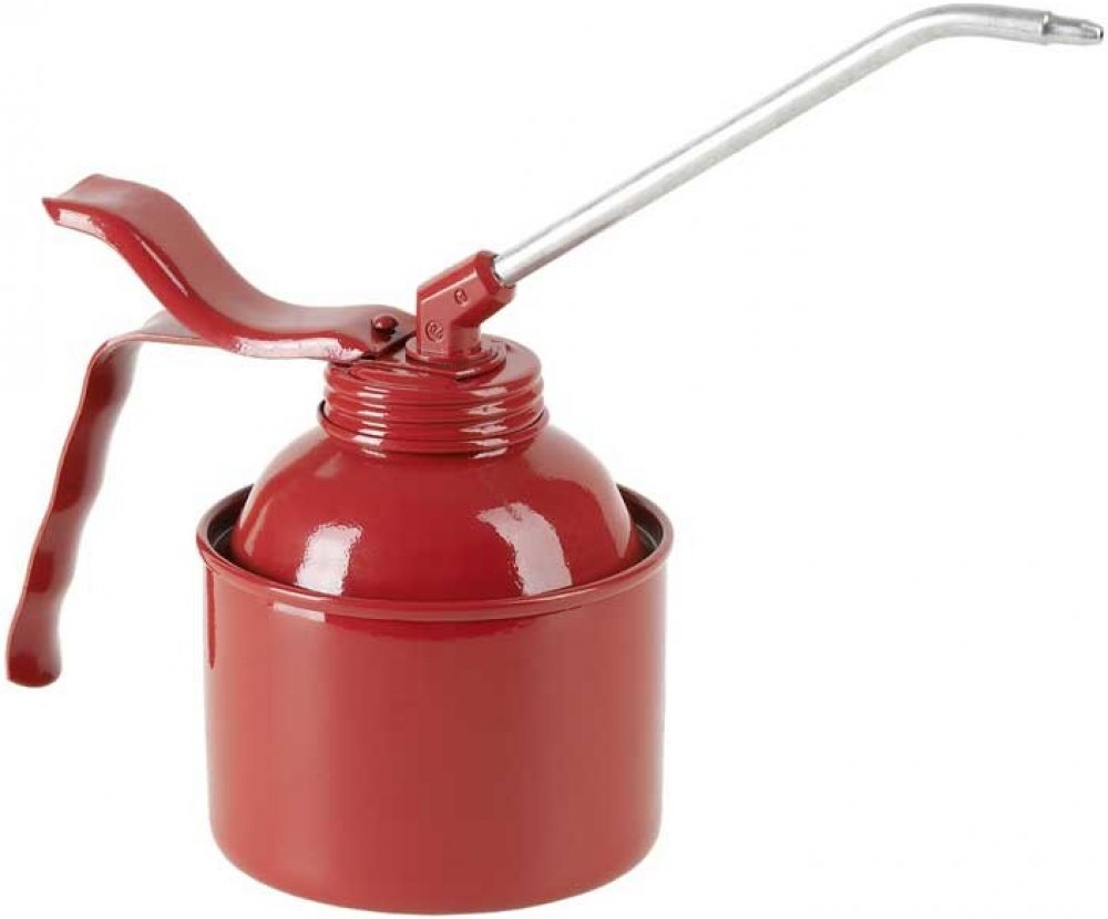 PRESSOL - plechová olejnička červená 350mlTechnické údaje:Obsah zásobníku 350 ml Materiál zásobník ocel Nátěr zásobníku červená, RAL 3000 Materiál čerpací zařízení polyethylen Zdvihový objem čerpacího zařízení (ml/zdvih) 1 Délka ostřikovací trubky (mm) 135 Materiál ostřikovací trubka hliník Výška (mm) 120 Základní plocha DxŠ (mm) 145 x 85 Hmotnost (kg) 0,23 Specifikace:Ostřikovací trubka, hliník, zahnutá (01 071)Zalomený spoj na ostřikovací trubku umožňuje mazání na špatně přístupná místaJednodušše fungující plastové čerpadlo (EWKP)Čerpací zařízení umožňuje dávkovaný výdej kapekVšehny ventilové sady jsou vyhotoveny jako kulové ventilyČerpací zařízení se 2 kulovými ventilyVysoká povrchová kvalita, nátěr pomocí ekologického laku ředitelného vodouSpeciální funkce:Ergonomický tvar