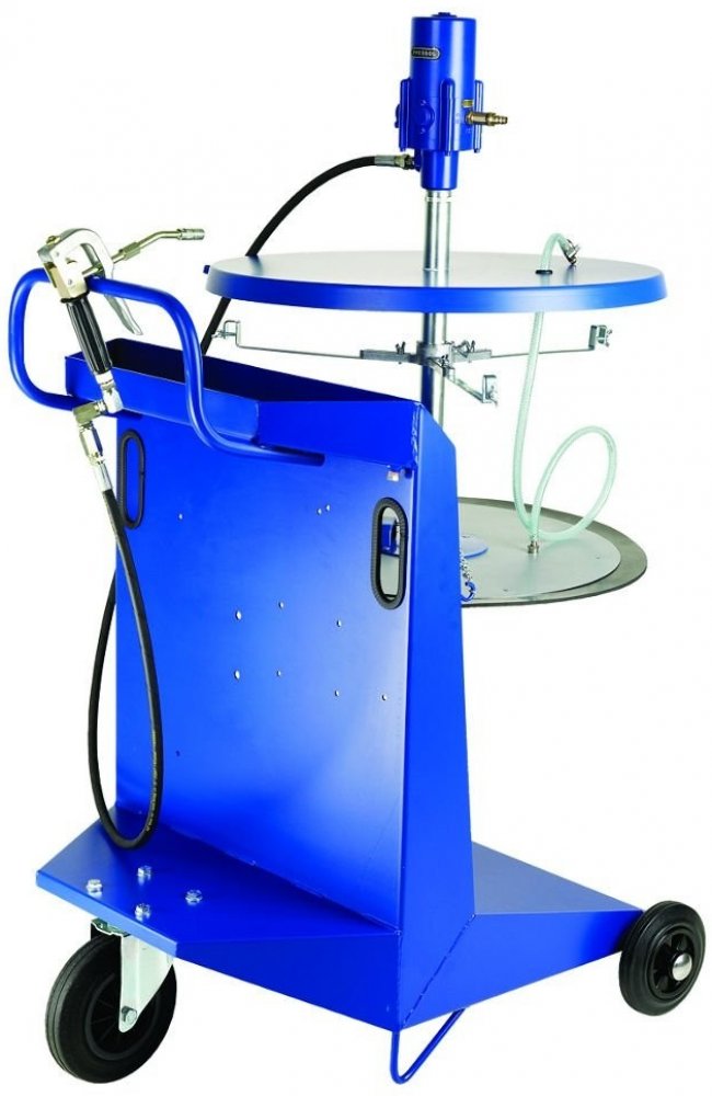 Pojízdný pneumatický mazací přístroj PRESSOL 18 786 051 Objevte efektivní a spolehlivé řešení pro mazání plastickými mazivy s pojízdným pneumatickým mazacím přístrojem PRESSOL 18 786 051. Tento přístroj je navržen pro použití s balením o hmotnosti až 200 kg (průměr 540 - 590 mm) a je vybaven vysoce výkonným pneumatickým čerpadlem s poměrem 50:1. Patentovaná konstrukce poslední generace zajišťuje extrémně dlouhou životnost, vysoký výkon a minimální hlučnost, což z něj činí ideální volbu pro náročné provozní podmínky. Díky minimálnímu počtu pohyblivých dílů je údržba a servis přístroje velmi snadná. Tento mazací přístroj je schopen efektivně pracovat s plastickými mazivy až do klasifikace NLGI 2, což zahrnuje běžné mazací tuky s konzistencí podobnou arašídovému máslu. Jeho všestranné použití zahrnuje autoservisy, rychloservisy, opravny závodních vozidel, servis stavebních a zemědělských strojů, stejně jako armádní mechanizaci. Technické specifikace: Pneumatické vysokotlaké čerpadlo: 50:1 Délka sací trubky: 1000 mm Tlak vzduchu: min. 2 bar, max. 10 bar, doporučený 8 bar Tlak čerpadla: 400 bar Výkon: 1100 g/min Spotřeba vzduchu: 400 l/min Připojení stlačeného vzduchu: 1/4" Hmotnost čerpadla: 8,5 kg (model 18 716 051) Další komponenty zahrnují: Vysokotlakou mazací hadici o délce 4 m (model 18 024) Vysokotlakou mazací pistoli G 1/8" s kovovým zahnutým nástavcem a 4-čelisťovou mazací hubicí (model 18 104) Rychlospojku (model 20 062) Sudové víko a upevnění nádoby se stíracím kotoučem Speciální Z-otočný kloub 3x360° (G1/8" vnější závit, G1/4" vnitřní závit, model 18 082) Pevně nastavený redukční ventil na 8 bar Pojízdný vozík na nádoby o hmotnosti 200 kg (model 17 009) Rozměry a hmotnost: Balení: 870 x 760 x 1420 mm Hmotnost: 52,50 kg Tento pojízdný pneumatický mazací přístroj je ideálním pomocníkem pro profesionály, kteří hledají výkonný a spolehlivý nástroj pro efektivní mazání.