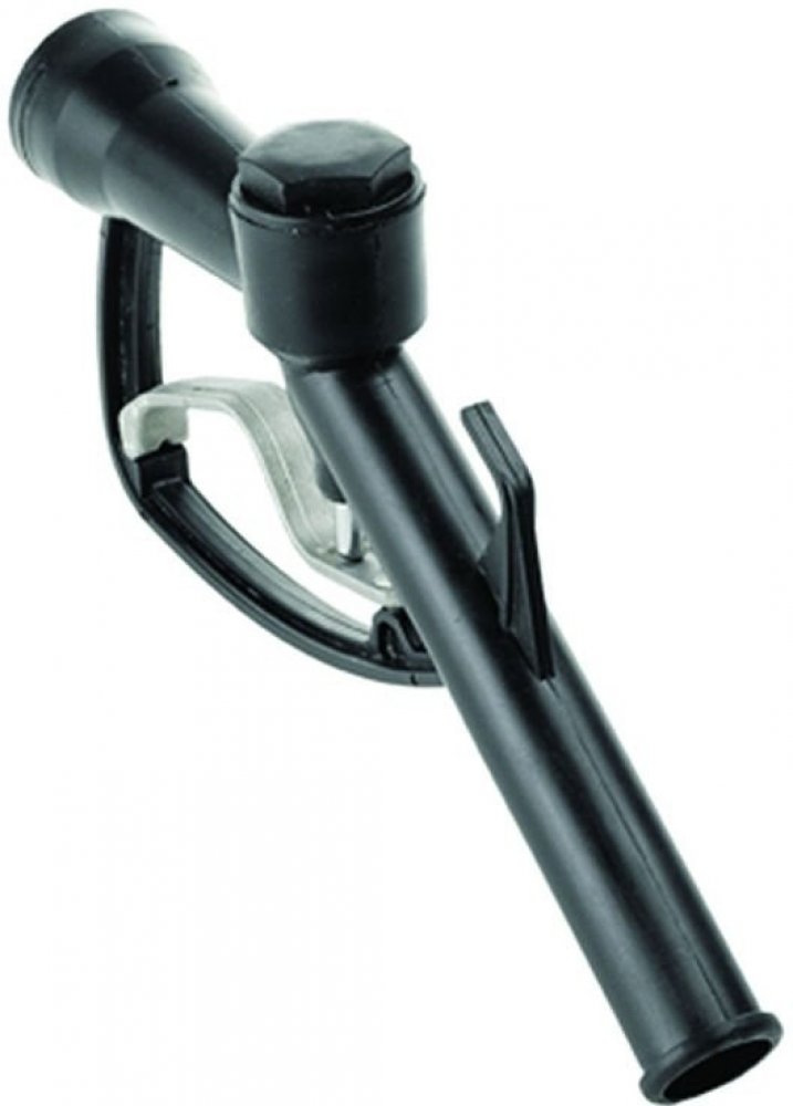 Polypropylénová výdejní pistole k elektrickým axiálním čerpadlům 12 V / 24 V / 230 V pro naftu a topné oleje PREMAxx, MOBIFIxx, připojení G 1" (vnitřní závit), max. průtočné množství 80 l/min, vnější průměr výtokové trubice 34 mm, těsnění NBR, pracovní tlak 0,5-4 bar, rozměry 280x190x50 mm, hmotnost 260 g